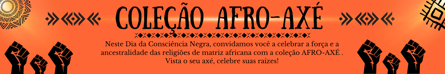 É com muito orgulho e respeito que nossa loja anuncia o lançamento da coleção AFRO-AXÉ, cada detalhe da coleção foi pensado para honrar as tradições de axé e fortalecer o orgulho de pertencer à cultura negra.