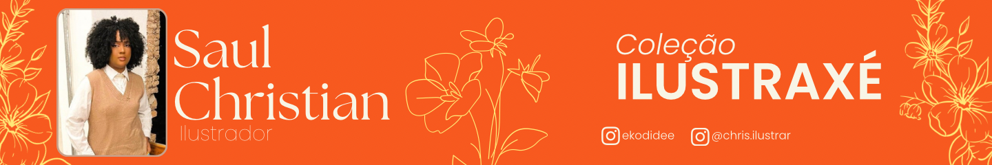 A Coleção Ilustraxé é uma celebração da arte feita à mão e da cultura viva que inspira cada peça. Nesta collab especial com a Ekodidé, o ilustrador Chris dá vida às suas criações autorais, agora estampadas em peças que vestem significado. Cada estampa carrega traços manuais que traduzem sensibilidade, ancestralidade e simbolismos em visuais vibrantes, conectando tradições e expressões reais — uma coleção feita com axé, para vestir história e criatividade.